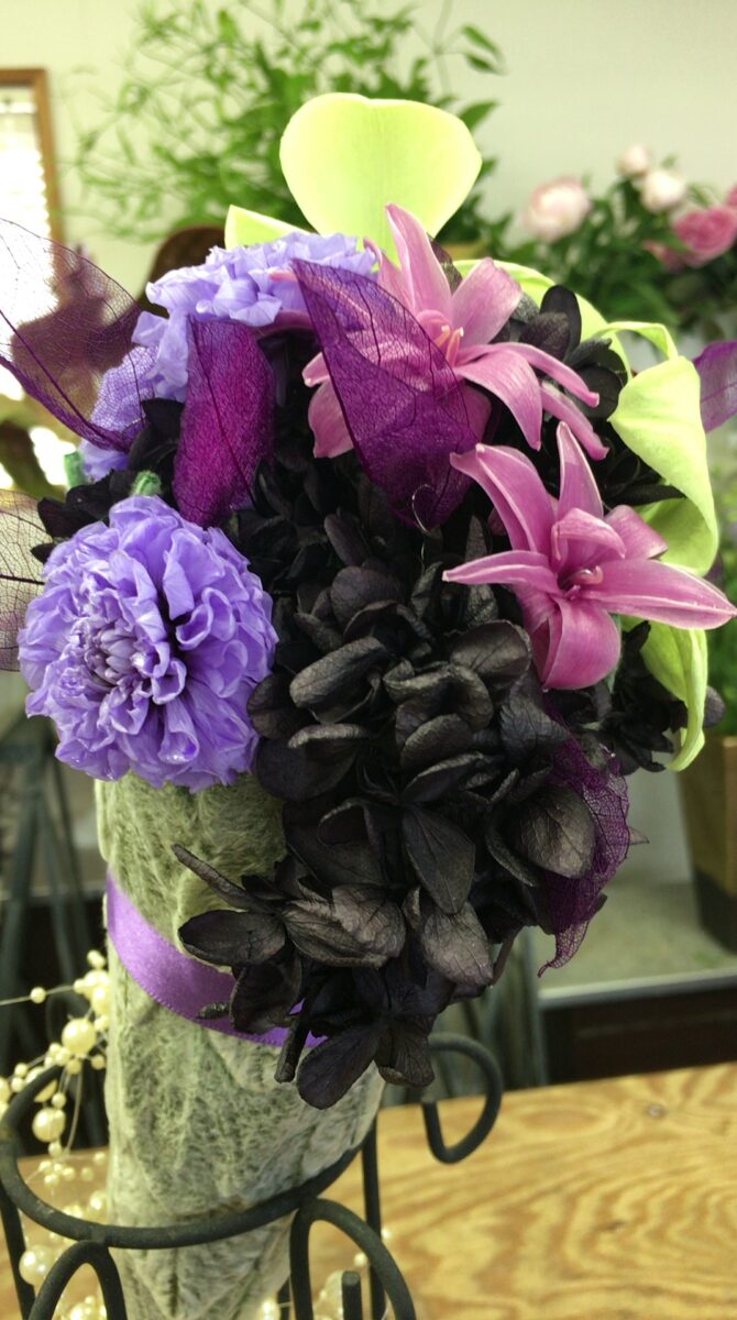 レッスン用のフレッシュフラワーをご注文の場合はすぐに花材の切り戻し、水あげをしてください。ギフトをご注文の場合は直射日光を避け、エアコンの風が直接あたらないよう、なるべく涼しいところに保管をお願い致します。